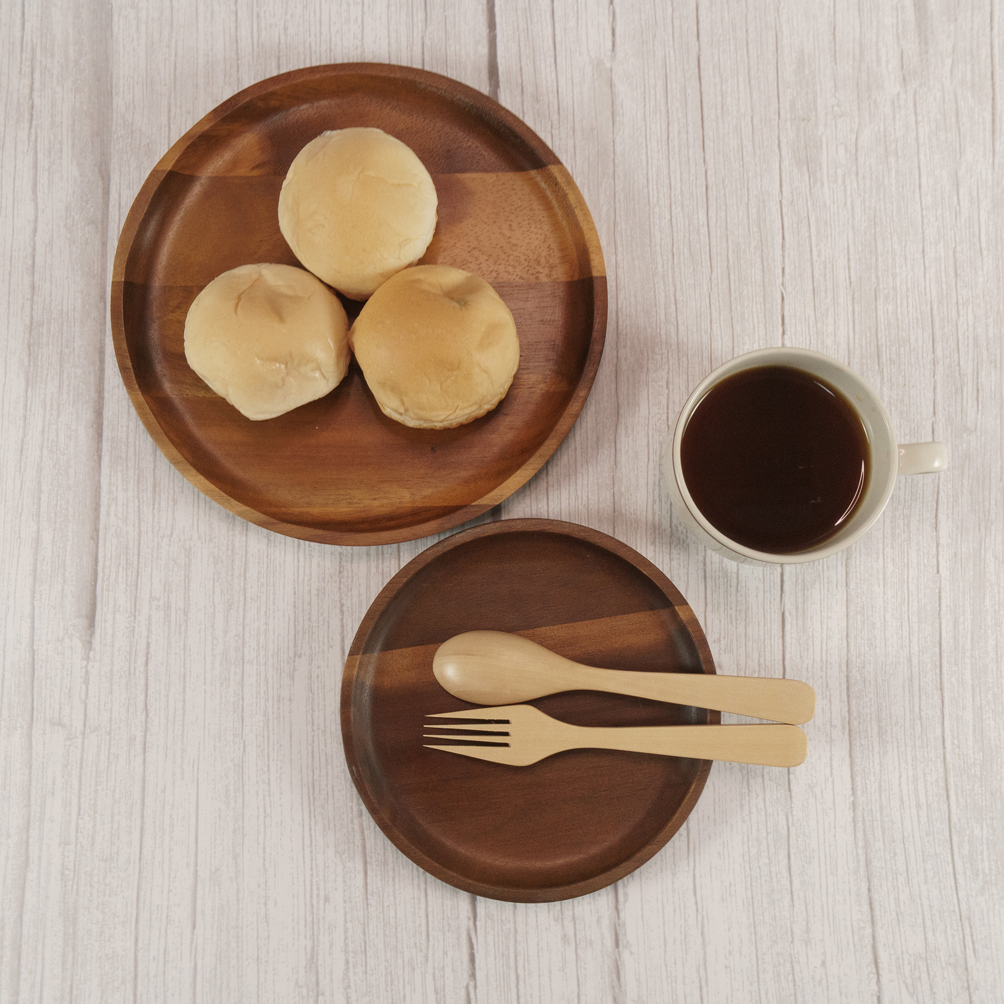 MINIWOOD จานไม้ ทรงกลม จานไม้ใส่อาหาร ถาดไม้ Food grade Wooden plate ไม้จามจุรี
